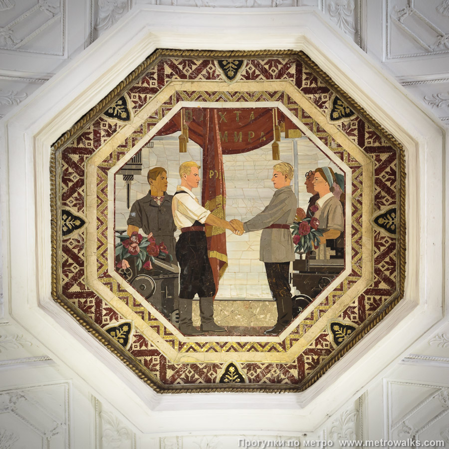 - Потолок украшен двенадцатью мозаичными панно, на двух из которых изображён герб Белорусской ССР. (18 октября 2015)
