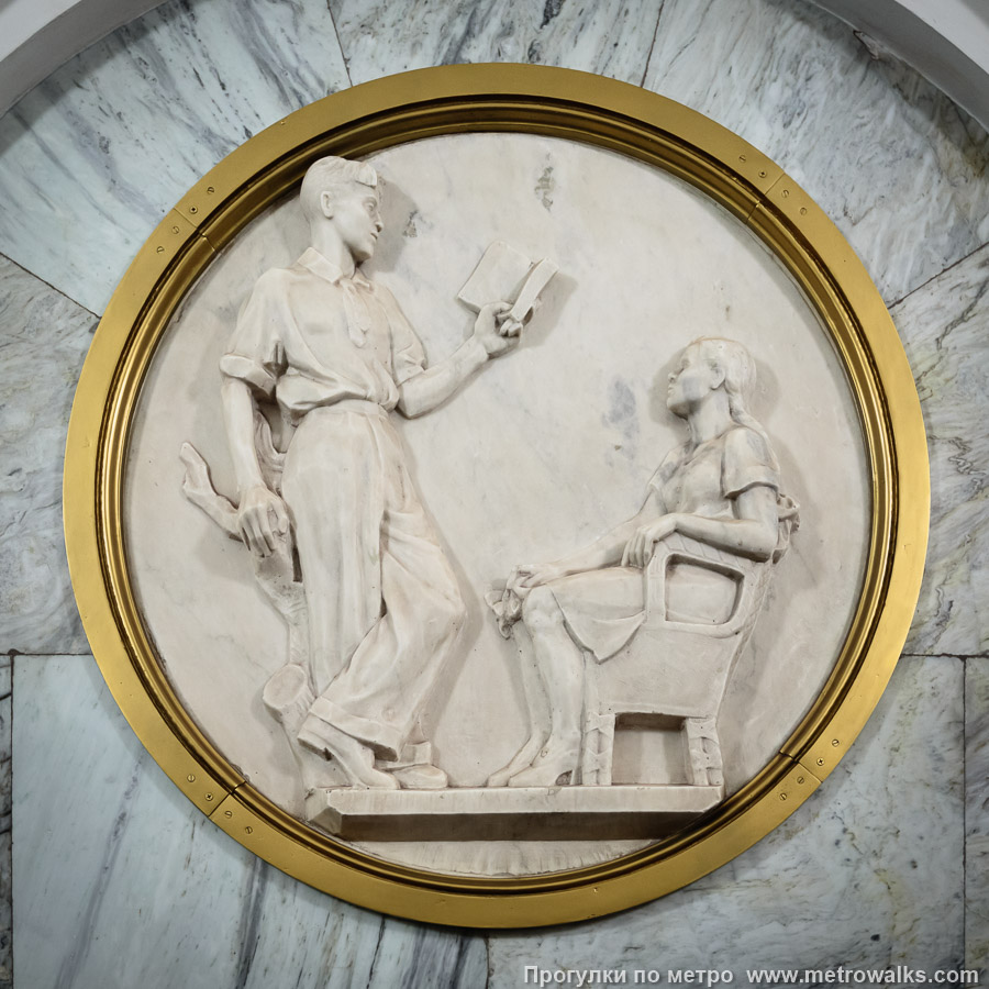 Тема художественного оформления станции — отдых горожан в ЦПКиО. Пилоны станции украшают 26 мраморных медальонов c 14 сюжетами отдыха в парке. Автор медальонов — скульптор И. А. Рабинович. Перспективу центрального зала станции венчает барельеф М. Горького, подписанный словами «Центральный парк культуры и отдыха имени А. М. Горького».