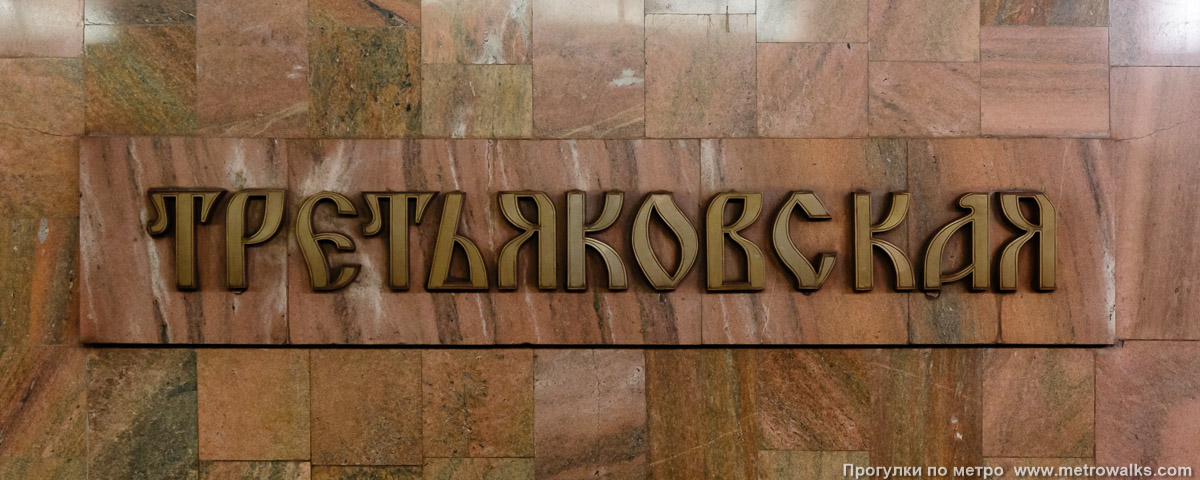 - Название станции на путевой стене крупным планом — первый зал. (21 августа 2022)