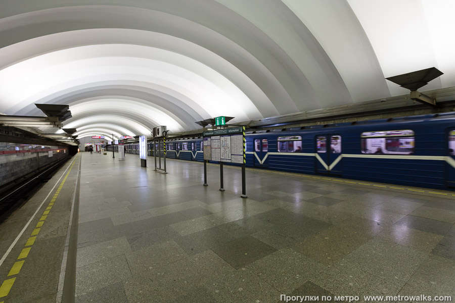 Площадь Мужества — односводчатая станция глубокого заложения.
